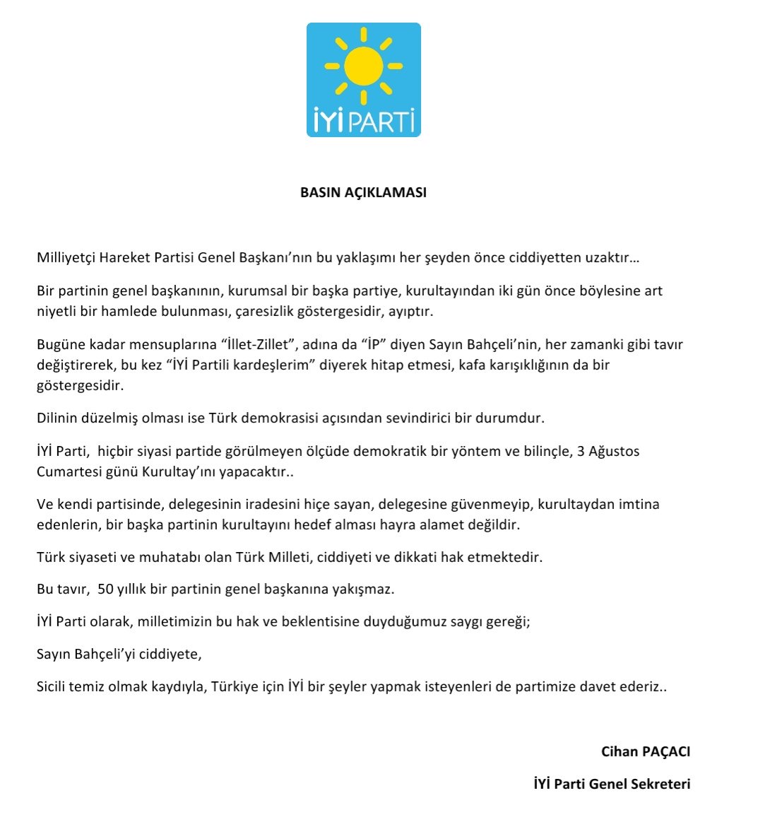 Vaziyet On Twitter Iyi Parti Mhp Genel Baskani Devlet Bahceli Nin Aciklamalarina Cevap Verdi